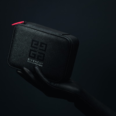 The Givenchy kit for La Première was designed in black leather like material, symbolizing the “Soin Noir de Givenchy” range. Its closure adds a touch of red, recalling one of La Première’s own colours. The kit also has a mirror for beauty touch-ups at any time during the flight.