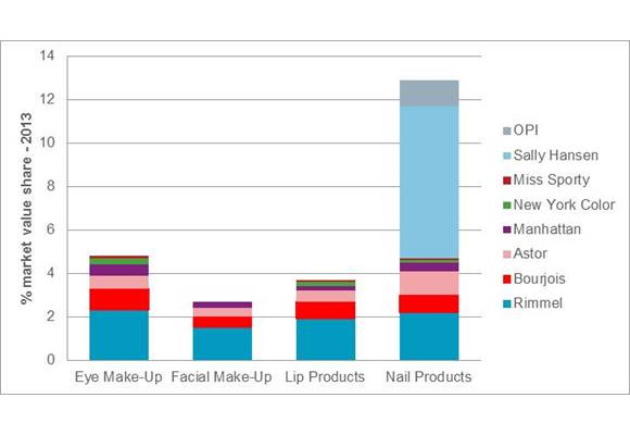 Actually, over 55% of Bourjois’ sales is generated in Western Europe, where Euromonitor forecasts a bleak outlook for colour cosmetics category with less than 1% Compound Annual Growth Rate (CAGR) over the 2013-2018 period. Although a growing proportion of the brand’s sales is generated in the Middle East and Africa, the most attractive region for colour cosmetics up to 2018.