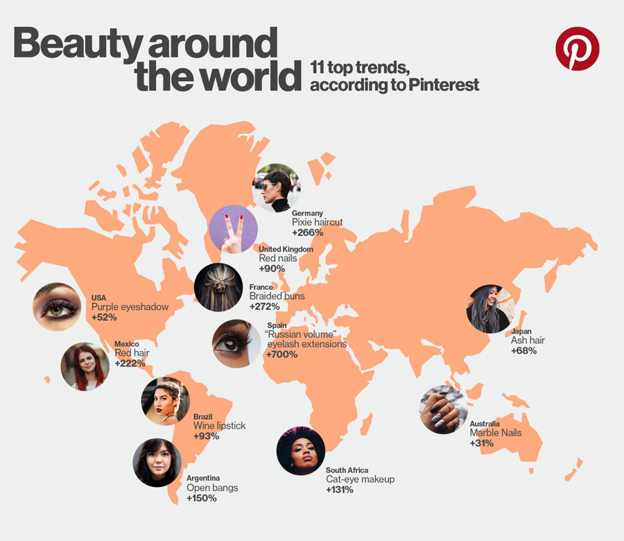 Does the country you live in influence the hairstyle you opt for when you get up in the morning? According to Pinterest, quite possibly.