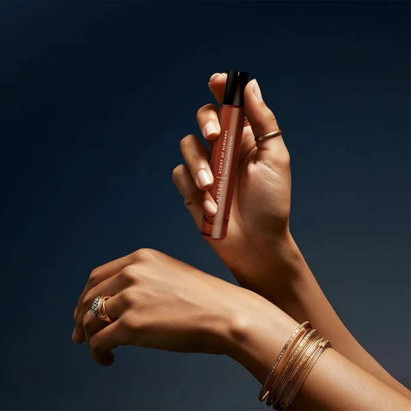 Scent of Nirvana blends oudh, patchouli, and amber notes, botanicals studied for their stress-reducing properties, with skin-loving jojoba oil, vitamin E, and antioxidants for a soft, lasting finish. The formula is crafted without synthetic fillers, parabens, or phthalates, aligning with clean beauty standards while delivering both luxury and function.