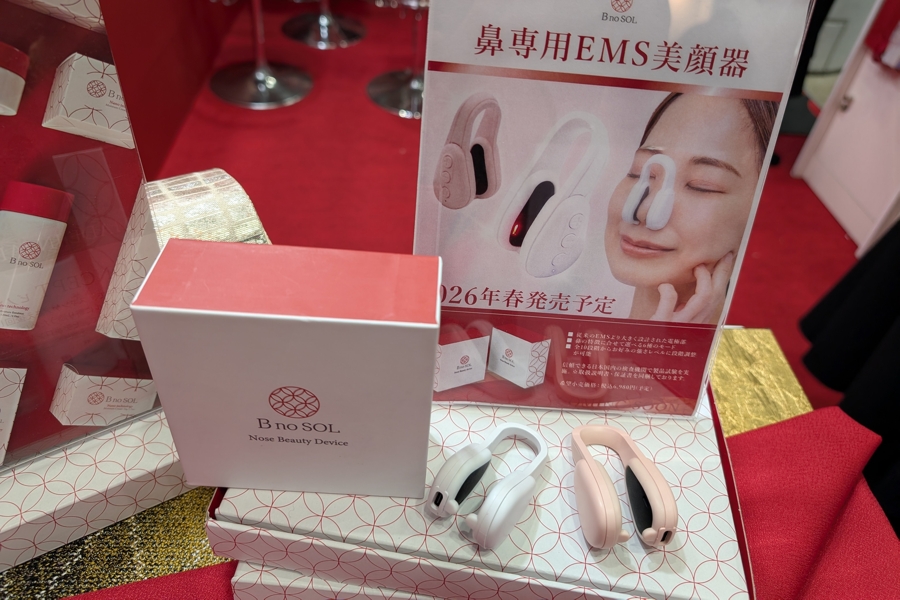 Japanese beauty brand B No Sol presented a new pore care EMS device. The Nose Beauty Device is a USB-chargeable infra-red/EMS device that is clamped onto the nose like a tiny pair of earphones. The wings of the nose are covered with the EMS pads so that the red light and the electro-magnetic stimulation can tackle inflammation, helping to decrease pore size.