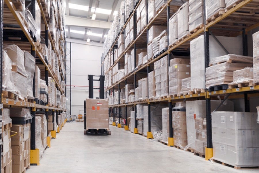 A purpose-built warehouse — with a raw-materials room, a temperature-controlled room and two large dispatch areas — supports fulfilment for Cosmewax customers, including international retailers such as Superdrug, Rossmann and Boots. High industrial racking maximises vertical space.