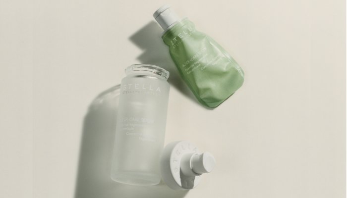 Launched in the UK in September 2022, the STELLA by Stella McCartney luxury skincare range is based on a concept of beauty that combines nature, efficiency, and responsibility. The skincare line is made up of three products in various sizes: Reset Cleanser, Alter-Care Serum and Restore Cream moisturizer, with vegan formulas made from at least 99% ingredients from natural origin. The ingredients are 85% traceable down to the country of harvest, and 15% traceable down to the continent. The long-term goal is to trace 100% to the country of harvest.