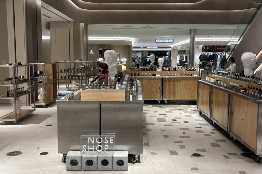 In the impressive new Azabudai Hills mall, the Nose Shop features high-end niche brands, such as Amouage, Essential Parfums, and Laboratorio Olfattivo, and employs knowledgeable advisors.