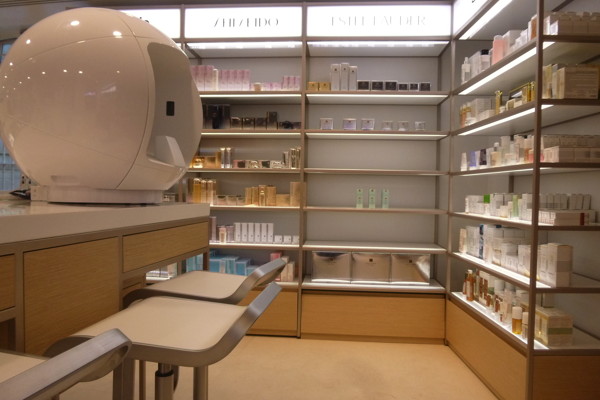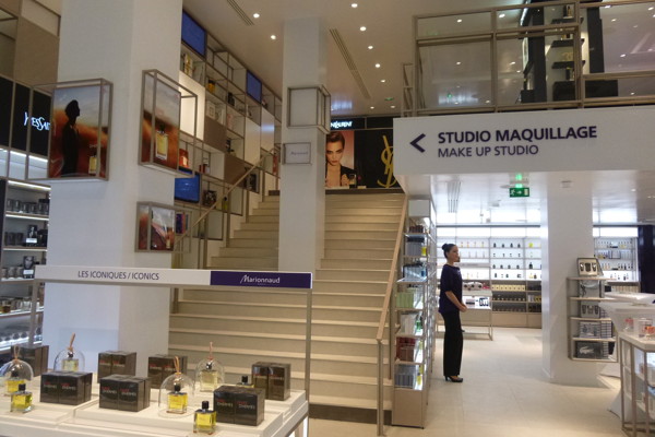 The mezzanine is completely dedicated to makeup. It was added to the store, which enabled to gain over 100 m2. It also enables to catch a glimpse of what lies beyond the perfumes at the entrance. It comprises a series of makeup tables to recreate the atmosphere of studios and fashion shows in a luxurious decor. Brands’ professional makeup artists offer customers flash makeup sessions and personalized tips. Thanks to digital mirrors, customers can take pictures of themselves and post them on social networks.