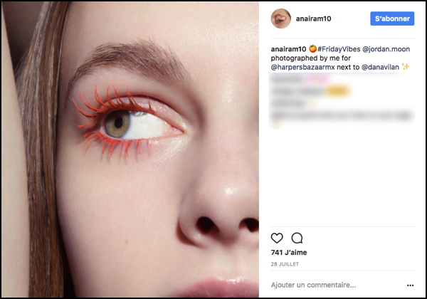 The trend is popular editorially too, with fashion photographer Anaimram recently posting a picture she took on a Harper’s Bazaar Mexico and Latin America shoot, which shows model Jordan Moon sporting spiky orange lashes. Photographer Christine Itel’s recent shoot for Scorpio Jin Magazine also featured some striking yellow eyelashes.