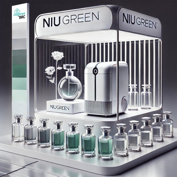 Niugreen is part of a business strategy designed from the outset to help reduce the environmental impact of as wide a range of cosmetic products as possible. For alcohol-based products packaged in glass bottles, the containers need to be washed and odour neutralised before reuse.