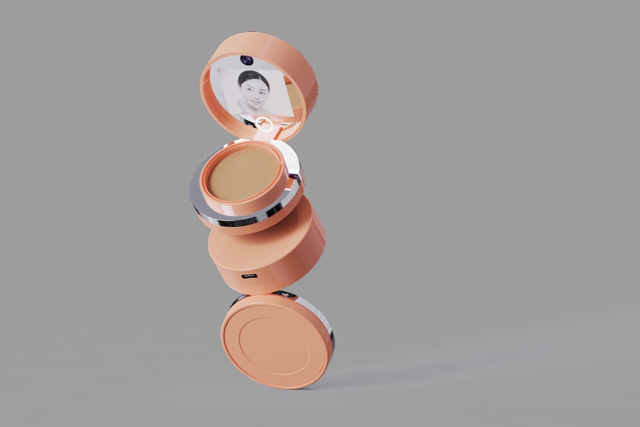 Another star product is the UV Camera Cushion Compact. When integrated into a sun makeup case, its small camera allows users to check their entire face is protected by the sun powder and to identify forgotten areas.