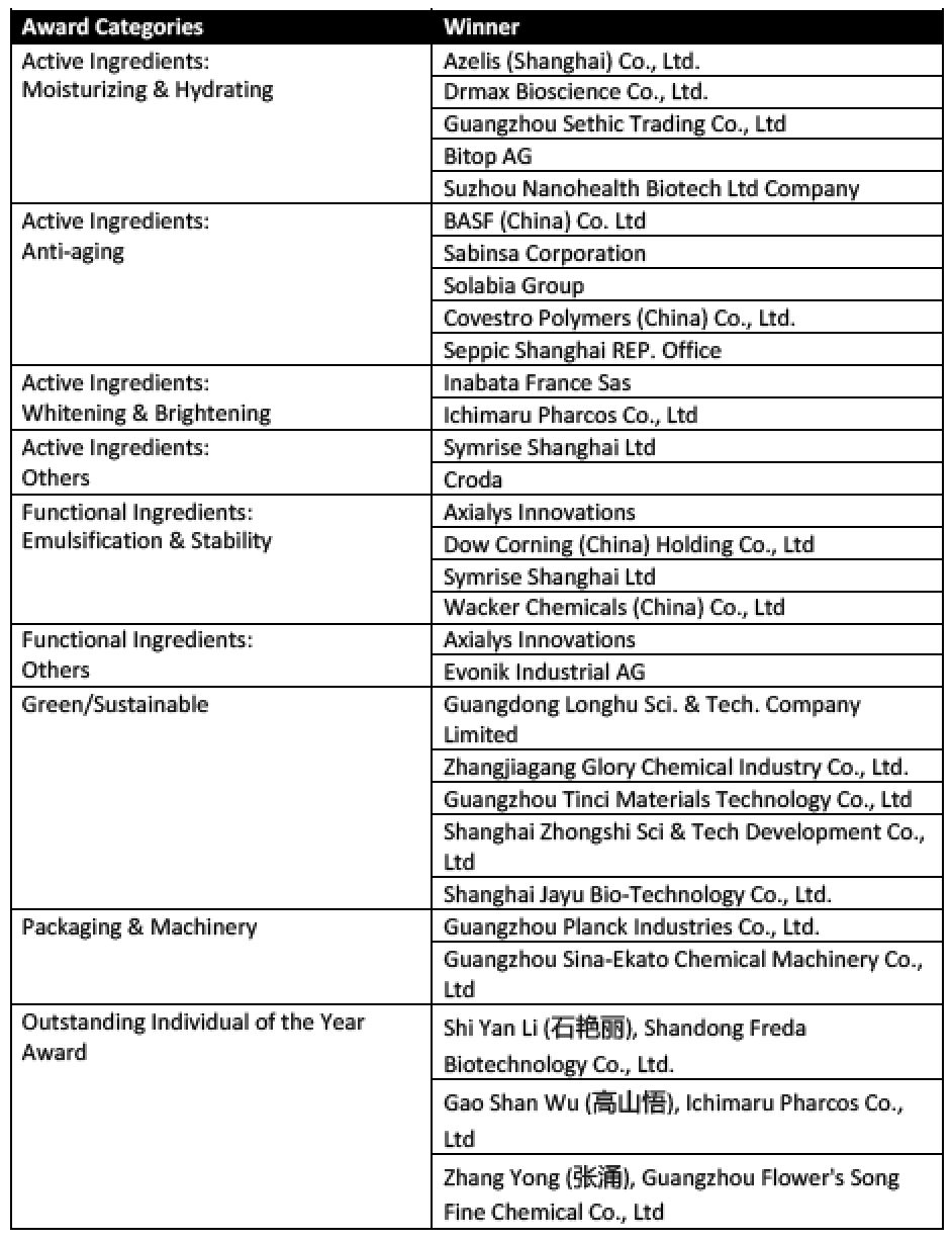 The event also awarded the latest ingredient innovations identified by a jury of academic and industry experts. A total of 30 winners were awarded: