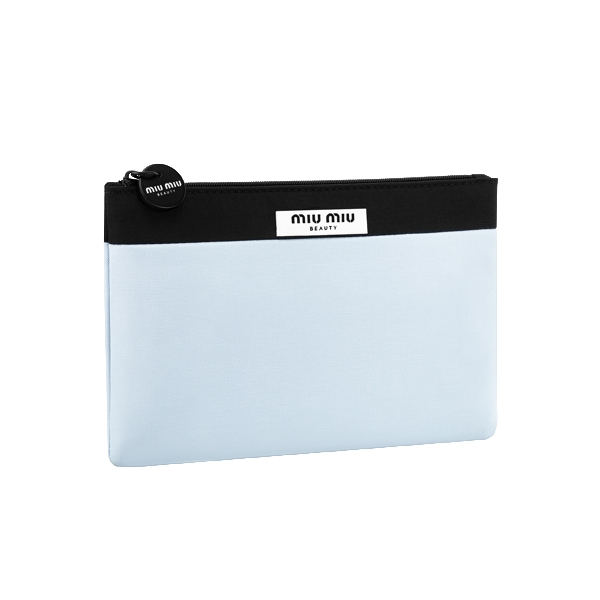 Complementing Miu Miu’s refined beauty universe, Pure Trade has developped a two-tone luggage set in black and light blue, comprising a tote, a pouch, and a vanity case crafted from RPET.