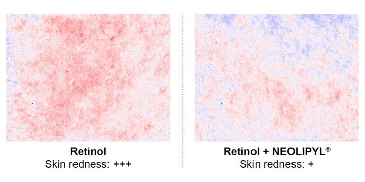 In addition, Neolipyl demonstrates complementary benefits when used alongside retinol on normal skin. When formulated in combination with this reference molecule, the active ingredient limits its adverse effects (dryness, discomfort, redness, etc.), without altering its anti-wrinkle efficacy.