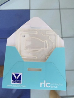 Germany-based packaging supplier Klocke recently developed a brand new sample made of a thermoformed ultra flat blister (<2mm) that can be used in mailing or even press operations. Code name of the innovation: "Slim Pack".