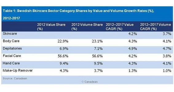 Although facial care will continue to dominate the skincare market in Sweden, depilatories will display the most growth to 2017. According to market research firm Canadean, this is mainly due to the efficiency and ease of use of the products. [1]
