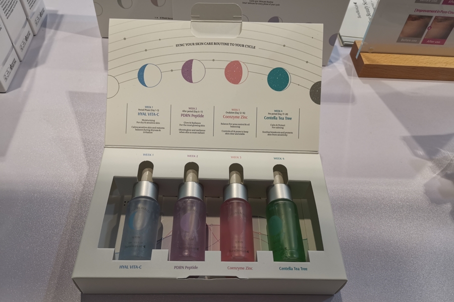 Korean brand Sureskinlab has tapped into the menopausal and hormonal skincare trend with its Cycling Beauty Serum set. The collection includes four facial serums tailored to the skin changes across the menstrual cycle: Hyal Vitamin C for sensitive skin in week 1, PDRN Peptide to boost radiance and firmness in week 2, Co-Enzyme Zinc to combat breakouts around ovulation and mid-luteal phase (week 3), and Centella Tea Tree to soothe irritation in the pre-menstrual week 4.