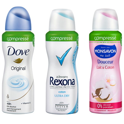 Lancés en 2014 sur le seul marché féminin, les déodorants "compressés", dont la taille est réduite de moitié pour une efficacité et une durée présentées comme identiques, ont déjà conquis 5% du marché français des déodorants, a indiqué mardi à la presse François-Xavier Apostolo, vice-président marketing d’Unilever France. « On a été bien au-delà des prévisions », a-t-il assuré.