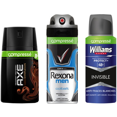 En 2015, Unilever va poursuivre le développement de sa gamme "compressé" avec cette fois les déodorants hommes (marques Axe, Rexona Men, Williams) et vise une part de marché « proche de 10% » (7% pour les produits femme et 3% pour les hommes).