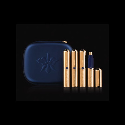 Ainsi habillés d’or et du bleu Guerlain, les quatre flacons au design épuré - 15 ml chacun - de la nouvelle Cure Orchidée Impériale se glissent dans une pochette - écrin.
