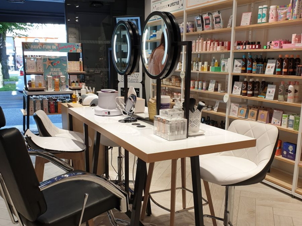 Un tout nouvel espace soin a été créé au centre de ce concept store où sont proposées par des « Beauty Coach » des prestations classiques comme l’épilation des sourcils, le soin du visage, la pose de vernis, maquillage mais également des prestations plus innovantes comme les extensions de cils et le coaching make-up. « Ces Beauty Coach sont formées par des professionnels pour répondre aux exigences de toutes les Beauty Addicts », explique l’enseigne.