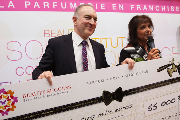 Philippe Georges, Président-fondateur de Beauty Success, le réseau de parfumeries sélectives qui occupe la quatrième place sur le marché français, a remis un chèque de 55 000 euros à l’Association Laurette Fugain, en présence de Stéphanie Fugain, Présidente de l’Association spécialement venue pour l’occasion. L’association fondée en 2002 lutte contre la leucémie et milite en faveur du don d’organes.