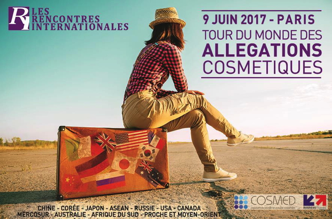 Le 9 juin 2017 à Paris, les Rencontres Internationales organisées par Cosmed et Business France seront consacrées aux allégations des produits cosmétiques, avec un passage en revue des réglementations en Chine, en Corée, au Japon, dans l’ASEAN, en Russie, aux États-Unis, au Canada, au sein du Mercosur, en Australie, en Afrique du Sud, au Proche et Moyen-Orient.