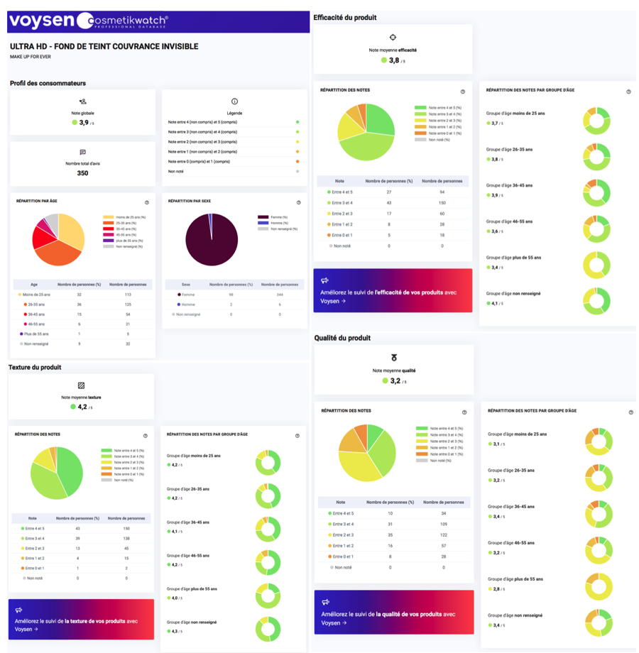 – Note attribuée par les consommateurs à l’efficacité du produit (détail par tranche d’âge disponible) ;