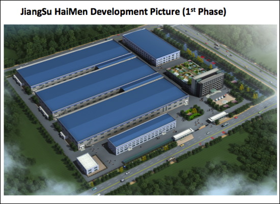 Joe Wang - Absolument ! Il s’agit d’un investissement, vous l’avez dit, considérable qui va s’étaler sur plusieurs années. Avec le développement rapide de l’économie chinoise au cours des dernières années, l’industrie cosmétique se développe très rapidement. Avec nos 30 années d’expérience dans l’installation d’usines en Chine et avec notre volonté de répondre à tous les besoins de nos clients, nous avons finalement décidés d’implanter la nouvelle usine à HaiMen, dans le JiangSu, après différentes évaluations multi-parties. La cérémonie de signature officielle avec le Comité administratif de la Nouvelle Zone du Port de HaiMen s’est déroulée le 8 juillet 2014. La première tranche de 99 000 m² du site de production devrait être opérationnel le 1er juillet 2015.