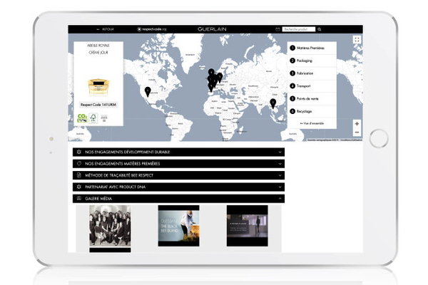 Ouverte au public depuis ce mois d’avril, la plateforme est accessible en scannant le QR Code des produits ou via le site Guerlain, sur l’onglet Bee Respect. Elle couvre pour l’instant l’ensemble des produits de soin, mais sera complétée des produits de maquillage d’ici l’été puis des parfums pour la fin de l’année.