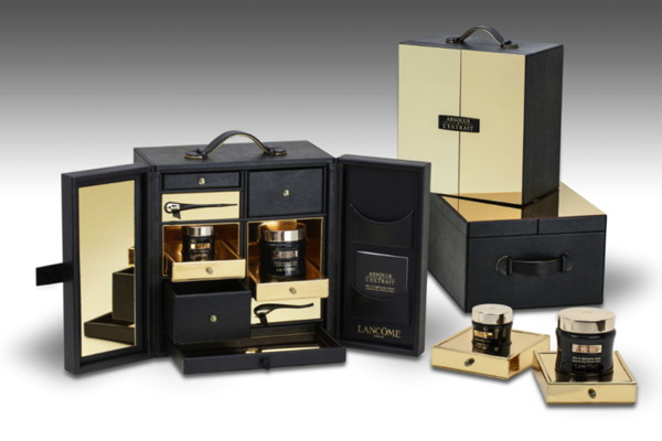 « Ce coffret malle, à la présentation spectaculaire et luxueuse repousse les limites des coffrets de soins haut de gamme. Avec sa poignée en faux cuir intégrée pour faciliter son transport, il sera incontestablement conservé et utilisé par la consommatrice Lancôme, » explique le Knoll.