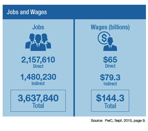 En 2013, l’industrie a contribué pour près de 237 milliards de dollars au produit intérieur brut (PIB), pour 3,6 millions d’emplois (2,1 millions directs et 1,5 millions indirects). L’industrie des produits de soins personnels a considérablement augmenté au cours des 25 dernières années. Entre 1990 et 2014, l’emploi dans notre industrie a augmenté de 43 pour cent, contre 27 pour cent pour les États-Unis l’emploi non agricole globale.