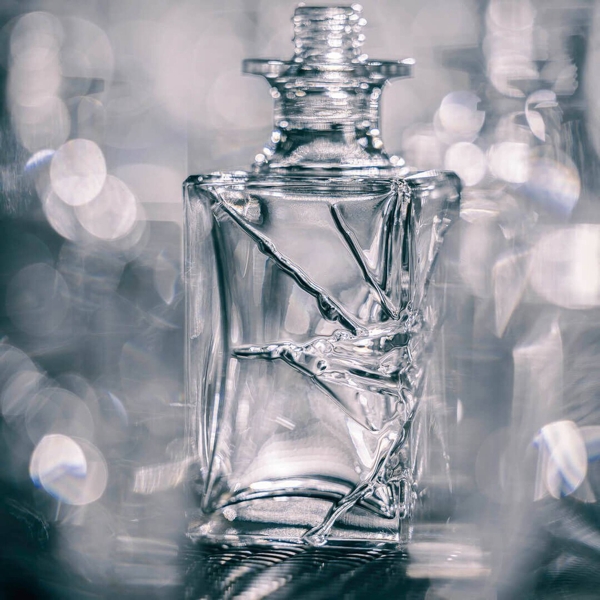 Cette démarche créative rupturiste se retrouve dans le design du flacon. Sous une apparence simple et une forme parallélépipédique classique, il présente un verre fragmenté, dont les tensions internes deviennent visibles.