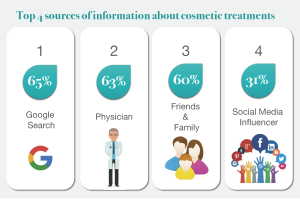 Parmi les sondés qui avouent avoir subi une opération ou se préparent à en subir une, 75% expliquent accorder du crédit aux opinions et aux conseils fournis par la famille, les amis et les médecins. Si près de 50% font confiance aux recherches Google, seuls 10% admettent que leur décision de passer par la chirurgie esthétique est motivée par l’exemple d’une célébrité.