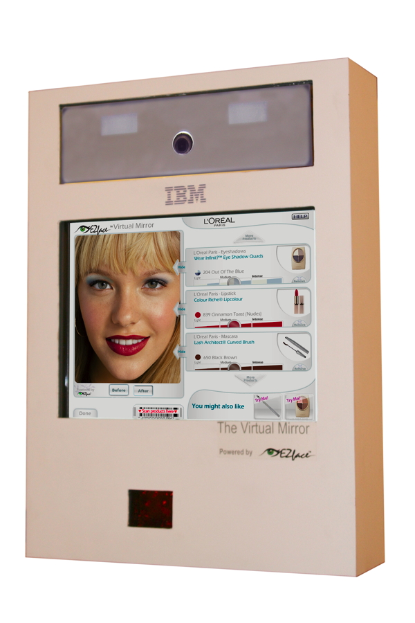 Plus exactement appelé Virtual Mirror, le dispositif a été conçu par EZface, une start-up israélienne, qui avait déjà créé un miroir virtuel sous la forme d’une application web utilisée par L’Oréal Paris, Maybelline New York, Garnier et CoverGirl.
