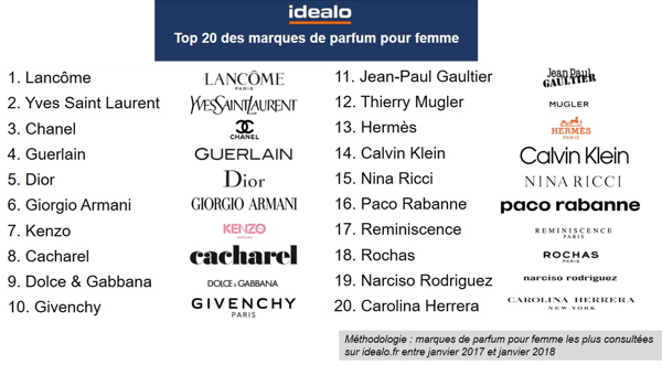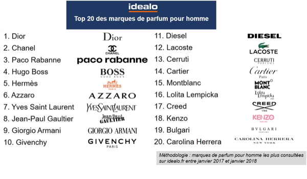 Pour établir ces classements, Idealo s’est basé sur les marques de parfum pour hommes et femmes les plus consultées sur sa plateforme entre janvier 2017 et janvier 2018, ainsi qu’aux parfums pour hommes et femmes les plus recherchés sur la même période.