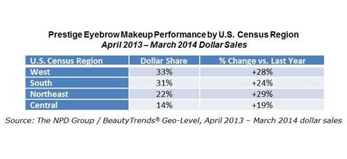 Les ventes de produits pour les sourcils ont progressé de 52% au Royaume-Uni dans le circuit sélectif, soit un chiffre d’affaires de 6,5 millions de livres (8,17 millions d’euros), sur la période janvier-mai 2014, selon The NPD Group. La croissance du marché du sourcil ne se limite pas au Royaume-Uni, la même tendance se manifestant aux États-Unis. Sur la période janvier-mai 2014, le total des ventes de produits pour sourcils aux États-Unis a atteint 57,6 millions de dollars (42,3 millions d’euros), soit une progression de 31%, par rapport à la même période en 2013.