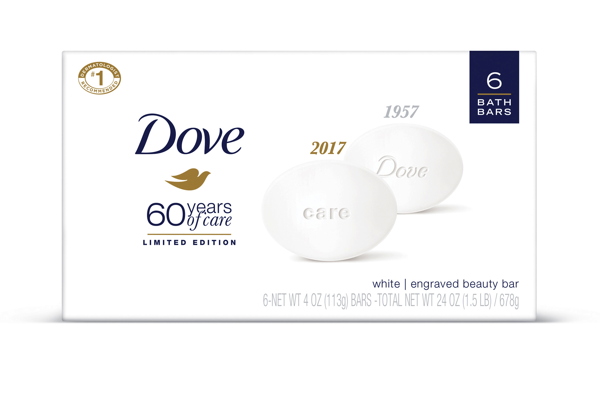 Lancée en 1957, le savon Dove a été le premier de son genre à inclure le célèbre "quart de crème hydratante" pour nettoyer et nourrir d’un seul geste. La formule reste inchangée et pour fêter ses 60 ans, la marque en propose une édition spéciale portant l’inscription "Care" (Soin) à sa surface. Elle sera disponible en janvier et en février.