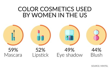 Selon le cabinet d’études de marché, la recherche de routines de maquillage plus simples ralentit la croissance des différents segments du maquillage aux États-Unis. Mintel prévoit en effet que les ventes de cosmétiques décoratifs augmenteront de 2% en 2017 pour atteindre 11,0 milliards de dollars, chaque catégorie (lèvres, visage et yeux) perdant environ 2 points de pourcentage cette année par rapport à 2016 [2].