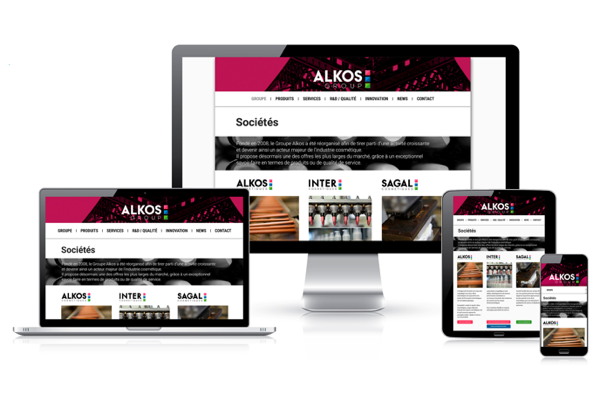 Un nouveau logo qui respecte l’historique de la marque grâce à une typographie proche du précédent logo, mais qui traduit aussi son appartenance au domaine cosmétique grâce à l’utilisation de trois couleurs pour les trois principales composantes industrielles du Groupe, à savoir le maquillage, le soin et l’hygiène. À noter aussi l’abandon du "e" au bout du mot Groupe qui devient donc "Group" pour bien marquer l’internationalisation corporate d’Alkos Group.