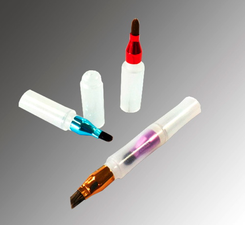 Toutefois, les pinceaux peuvent être personnalisés selon les souhaits des clients. Les manches et les véroles sont personnalisables : couleurs et logos.