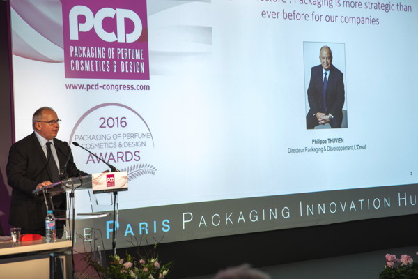 La cérémonie des PCD Awards présidée par Alain Béthune, et Michel Dupuis, experts packaging et co-animée avec Mirabelle Belloir, journaliste, a démarré avec la conférence d’ouverture de Philippe Thuvien, Directeur Packaging & Développement, L’Oréal ayant pour thème : « Le packaging est plus que jamais stratégique pour nos entreprises ».