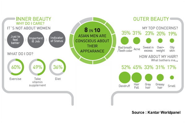 Huit hommes asiatiques sur 10 interrogés lors de l’enquête ont affirmé accorder de l’importance à leur apparence. Pour atteindre cet objectif, 60 % ont affirmé qu’il faudrait faire de l’exercice, 49 % consommer des suppléments vitaminés, tandis que 36 % accordent leur préférence à l’alimentation.