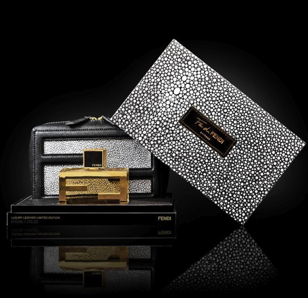 Prestige Packaging Industries (PPI) a réalisé pour Noël 2013 une série de coffrets luxueux dans le secteur de la beauté, notamment pour l’eau de parfum Fendi. Cette dernière réalisation a permis à la société française de montrer sa capacité à maîtriser un cahier des charges complexe : le coffret est monté avec un insert carton recouvert de satin noir, le socle est recouvert de papier imprimé noir avec pelliculage brillant. Surtout, un couvercle d’aspect cuir galuchat a été créé par impression et gaufrage sur papier, avec en facing une étiquette encadrée de vraies surpiqûres.