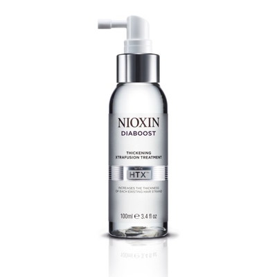 Diaboost, vendu exclusivement dans les salons de coiffure, peut s’utiliser seul ou en complément des six produits Nioxin, shampoings et après shampoings ou solutions complémentaires.