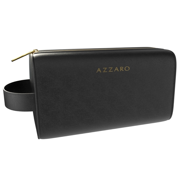 La finition or ambré du logo, des pullers ornés du monogramme solaire d’Azzaro, et des parties métalliques apportent un éclat chic et discret.