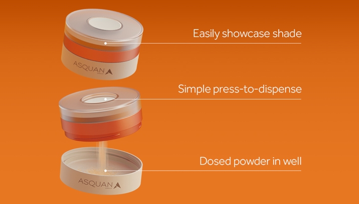 Le Powder Drop Jar d’Asquan a été conçu pour résoudre le problème à la source. Au lieu d’un tamis passif, il introduit un mécanisme actif de dosage, dont la demande de brevet a été déposée.