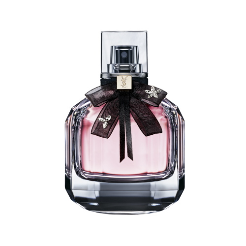SERAM, spécialiste français des décors, accessoires, gifts et objets promotionnels, revisite le concept de la lavallière pour Mon Paris Parfum Floral, d’Yves Saint Laurent, à partir d’un ruban de mousseline noire orné de strass et apposé manuellement sur la frette.