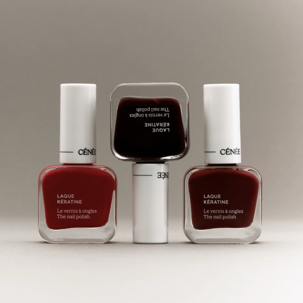 Cénée couvre quatre catégories. Les yeux, avec un mascara enrichi en peptides pour renforcer les cils. Les lèvres, avec un rouge à lèvres liquide semi-mat en cinq teintes à l’acide hyaluronique, et une huile à lèvres en quatre teintes à l’huile de noyaux d’abricot. Les ongles, avec une collection de vernis enrichis en kératine végétale en huit teintes, plus une base et top coat. Et depuis peu le teint, grâce au lancement de Teint Céramides, un blush liquide hydratant formulé avec entre 91 et 94% d’ingrédients d’origine naturelles, et enrichi d’un complexe pré et post-biotiques qui renforce la barrière cutanée. Le positionnement prix est en milieu de gamme, le rouge à lèvres étant proposé à 22,50 euros, et le vernis à 13,50 euros.