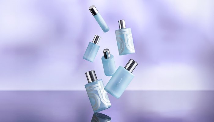 Baptisée Phoenix, la nouvelle ligne se compose de 6 flacons cylindriques de 10 à 200ml en verre allégé et doté d’une bague à vis qui facilite le recyclage et rend possible le remplissage.