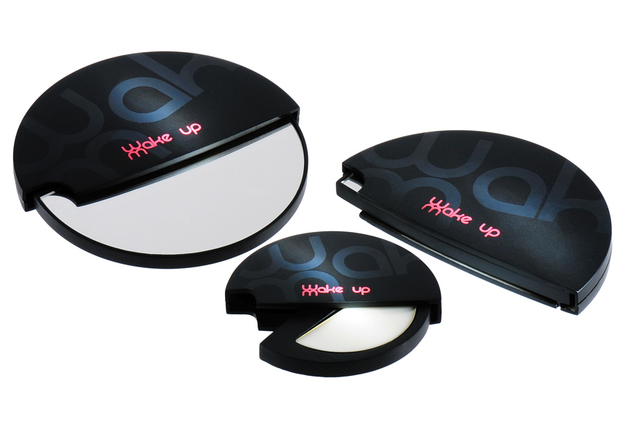 Le groupe français Cosfibel lance une nouvelle gamme standard de boîtiers à maquillage extra plats, "Wake Up/Make Up". Il s’agit d’une série de boîtiers en demi-lune dont la base coulisse et se déploie en éventail.